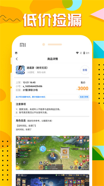 4、推出高福利的游戏账号交易服务,让您在收获超值体验的过程中,还能增添更多游戏乐趣。