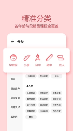 3、精准分类:精品课程涵盖各个年龄段,您可根据自身需求进行挑选。