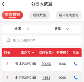 1)查找比赛、公棚和足环编号,随时管理自己的鸽子,包括饲养、训练和医疗等。