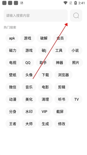 4、点击搜索框可以通过输入关键词的方式进行搜索