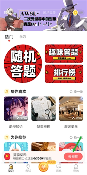 新用户一进入应用,就能获得相应的金币赠送。若想提现,可点击应用界面上的浮动【提现】按钮。