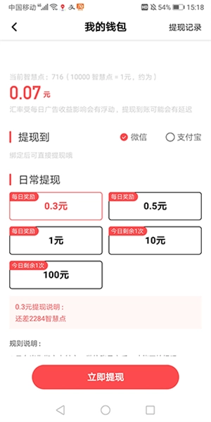 4、系统会校验您的奖励获得情况,若发现您通过非正常手段获得智慧点(包括但不限于刷单软件、模拟器、一人多开账号等),有权取消您的提现资格,情节严重者,有权采取封号等必要措施,并保留追究其法律责任的权利。