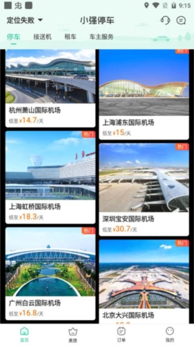 3、进入首页可以点击查看机场、高铁站、医院、地铁站等附近的停车位信息;