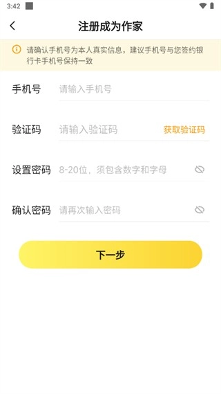 1. 在本站完成七猫作家助手的安装后,点击进入并登录。登录方式有手机验证码登录和账号登录两种。若您没有账号,则需先立即注册并填写相关信息,之后方可登录。