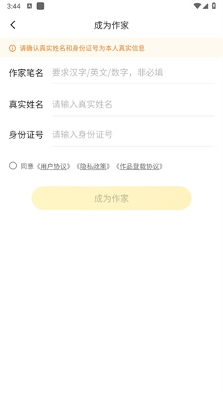 5、我的页面可以查看入驻天数、累计字数、累计收入等。