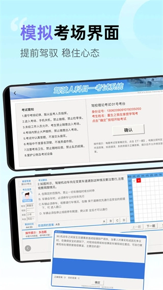 2、进入考场进行模拟后,若确认信息准确无误,点击【确定】按钮,便能正式开启考试。
