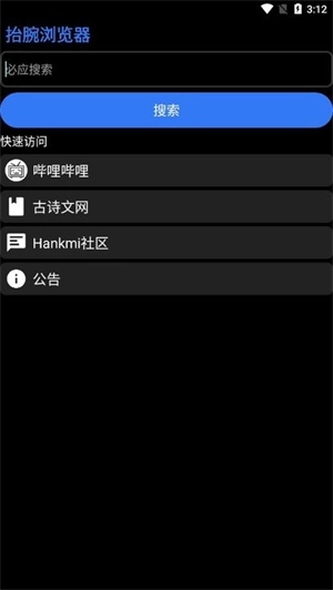 2、开启抬腕浏览器,映入眼帘的首页便是【搜索】,点击搜索框,输入你想要查找的内容即可。