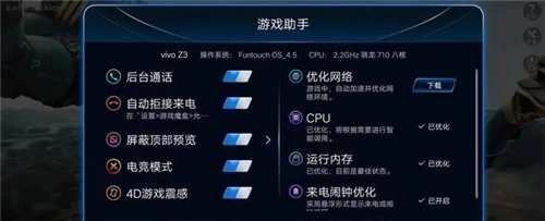 1、游戏助手,在游戏魔盒的设置界面,开启游戏助手功能后,手机会自动优化内存,智能调整CPU,提升其竞技能力。同时,它还具有后台通话、顶部阻挡预览等功能。从而最大限度地避免玩家在游戏中被打扰。