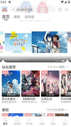 2、进入首页,搜索想的动漫。