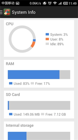 4、系统监控:对CPU、内存以及存储空间的使用状况进行实时监测。