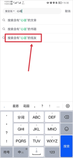 2、输入名称后点击搜索含有名称的馆友