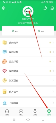 1、进入后,首先点击右下方“空间”,之后再点击上方的“头像”;