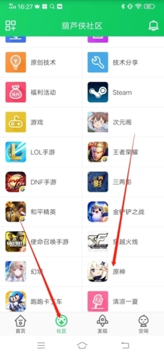 1、进入之后,第一步点击下方的“社区”,接着挑选要进入想发帖的版块。