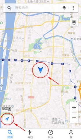 3、如果定位成功,那“箭头”就会变成蓝色,屏幕中心会显示出你的当前坐标。