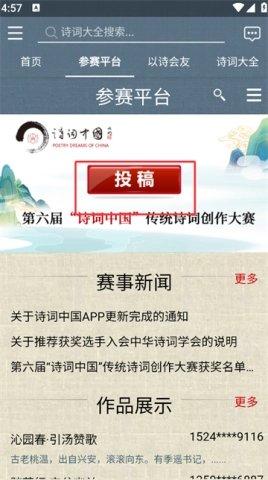 为用户提供个性化的个人主页和作品数字存档查阅服务,为当代优秀传统诗词作品提供展示和收录的平台。