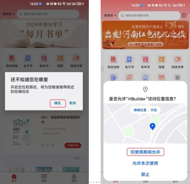 “书香河南公共文化平台”--打开--授权获取定位和跟踪权限,进入书香河南公共文化平台