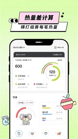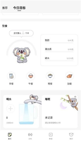 3、在首页上,你可以查看每日任务,包含运动和饮食的全面建议,还有助于你记录每日的热量摄入与消耗,让你的每一步都不再迷茫。