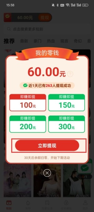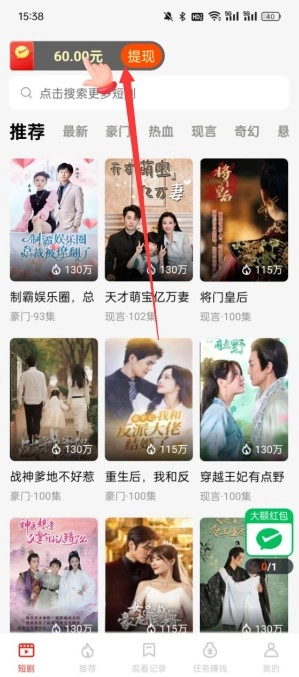 蕉果短剧为用户准备了极为丰厚的资源福利。用户每天上线观看精彩短剧的同时,还能够完成更多观看任务。在这里,用户可以一边尽情观看爽剧,一边领取红包。新用户注册,更可领取最高20元的可提现红包。