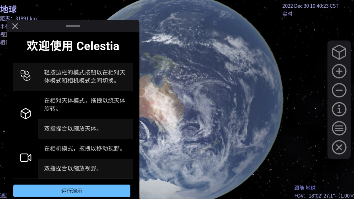 4、丰富视角工具:Celestia配备了多种导航与视角操控工具,借助这些工具,用户能够随心所欲地切换观测视角,并对天体运动进行控制。