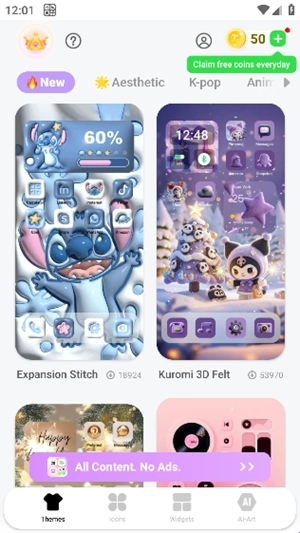 1、海量个性化资源:拥有丰富多样的主题、壁纸、贴纸、小组件和图标资源。