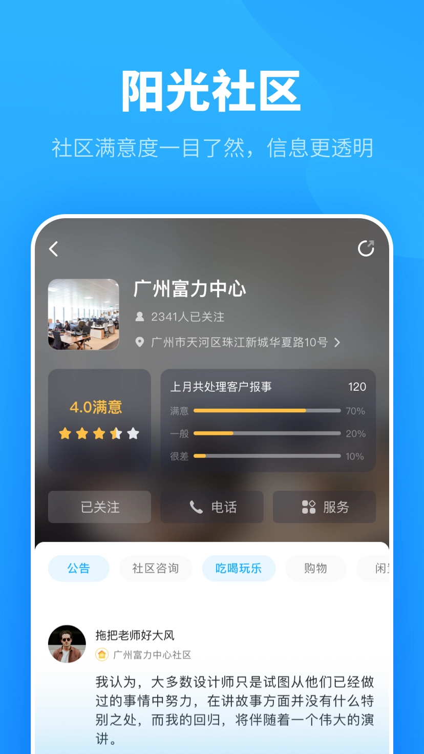 2. 促进社区居民与物业管理的信息互通—— 通过自在社区的卡片功能,达成社区居民之间的信息交流,以及物业面向社区的公告发布、活动组织等沟通互动,增强社区人群的归属感。