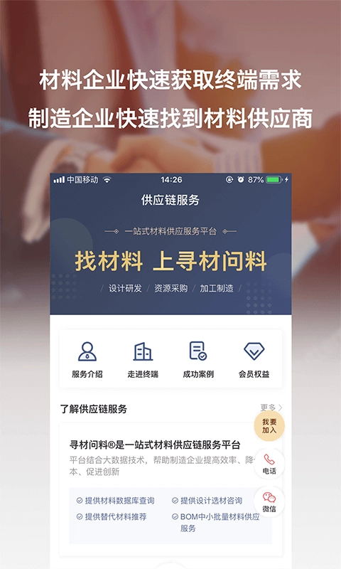 寻材问料是制造企业从产品设计、采购、工艺、制造等全流程,和材料方案商、供应商、工程师的连接平台。
