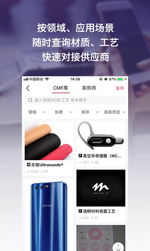 依据领域与应用场景,可随时查询材质及工艺,并能迅速对接供应商。