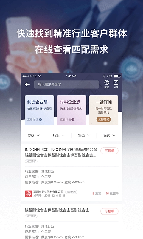 迅速定位精准的行业客户群体,线上查看匹配需求。