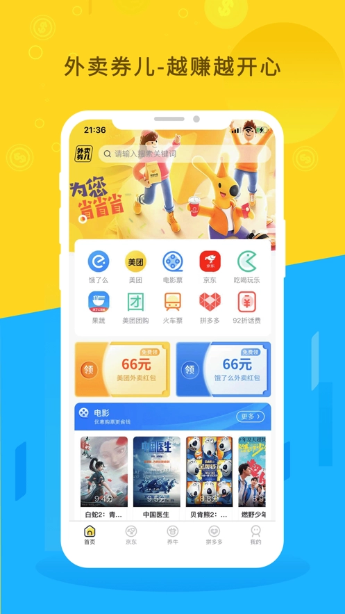 覆盖全部外卖平台,红包天天可领,每餐皆能省钱,吃得安心,省得舒心。