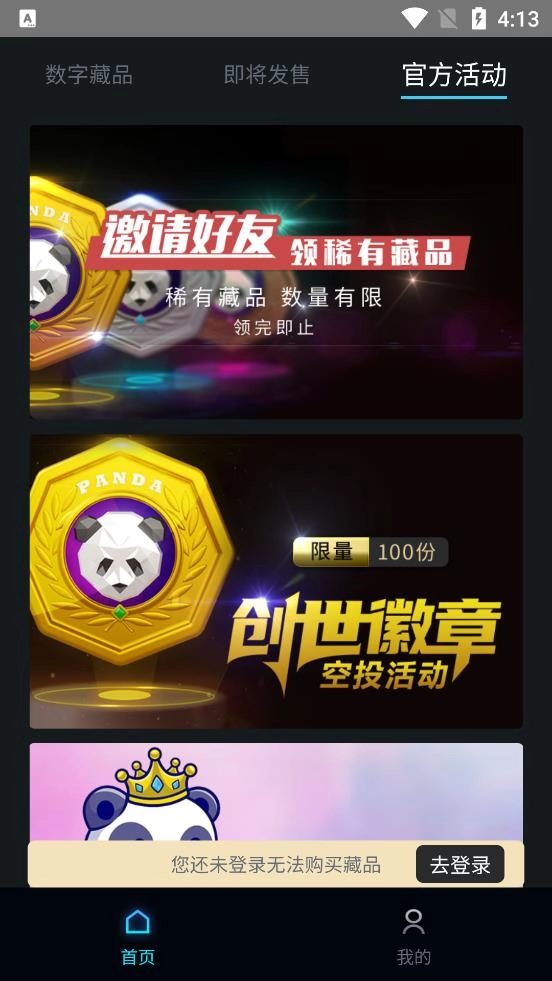 熊猫收藏作为一款极为实用的数字藏品交易平台,为用户呈现出琳琅满目的数字藏品。在该平台上,用户能够随时随地在线开展收藏、购买以及交易活动。不仅如此,用户还能够从中获取海量数藏资讯,借此更深入地了解各类数字藏品,着实十分实用。