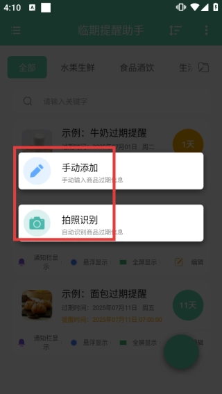 1、录入方式高效:扫码识别商品条码或手动输入关键信息,三秒完成物品建档,日期数据自动解析入库。