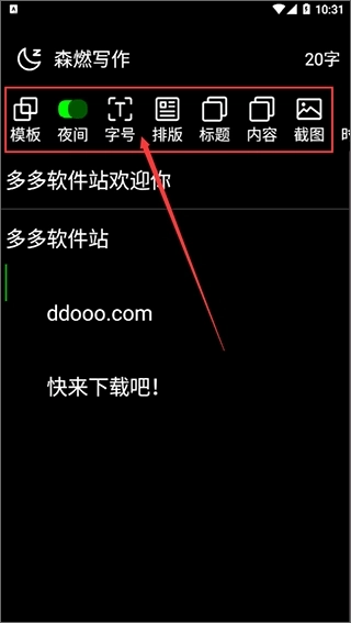4、最后,你便能着手进行自己的小说章节创作啦。这款软件还具备模板、字号、排版等实用功能,等待着你去体验呢。