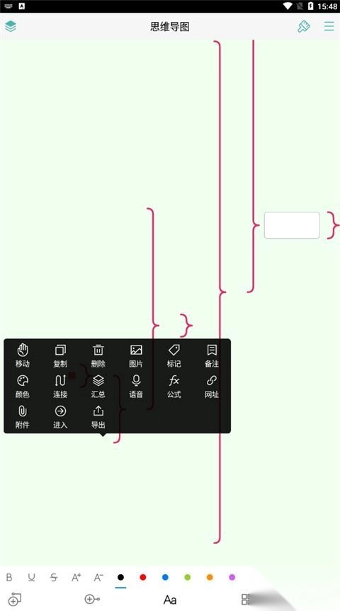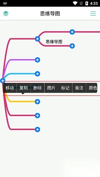 点击分支文字开始编辑,点击分支末端添加子分支,App长按分支即可弹出功能选项。