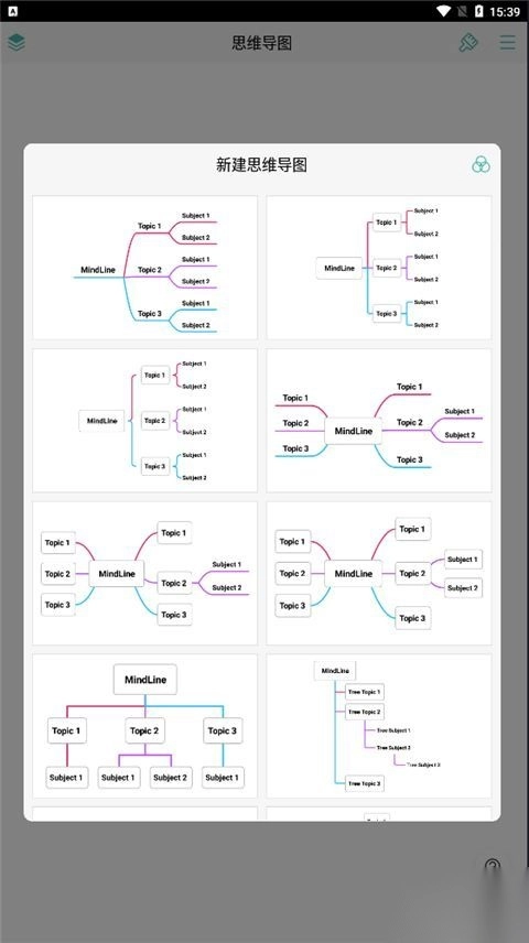 1、第一步,要先把MindLine思维导图手机版安装妥当。安装完成后,点击进入该软件,接着点击右上角,选择新建导图。