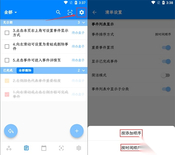 3、在本页右上角点击,即可对事件显示方式进行设置。