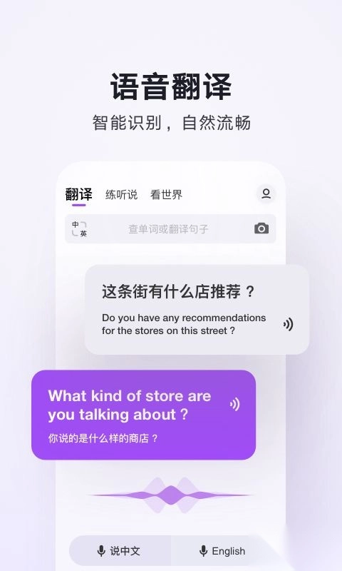 语音会话翻译:与外国人无障碍实时沟通,支持中、英语音输入
