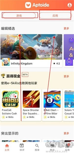 1、打开软件后,主页划分为 “应用” 与 “游戏” 两个板块