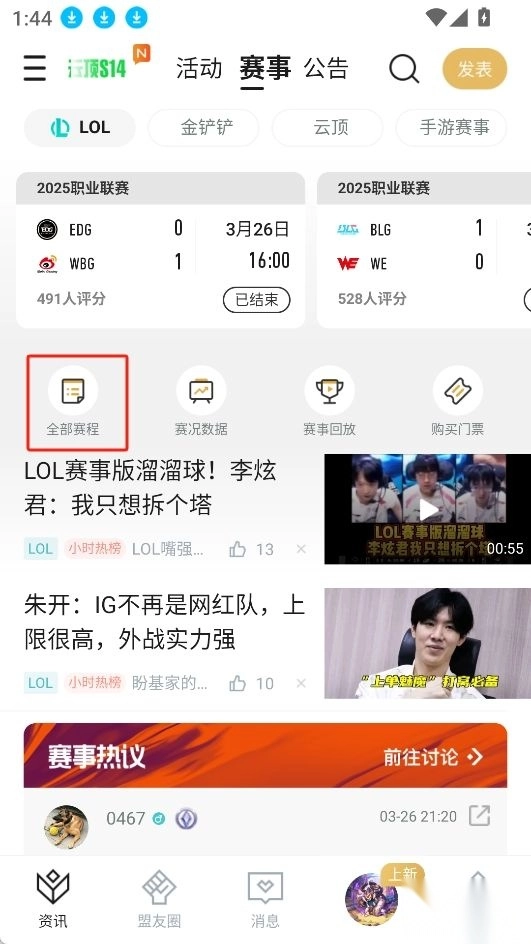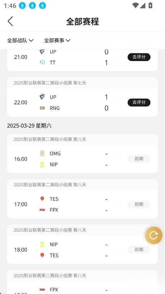 2.点击全部赛程;