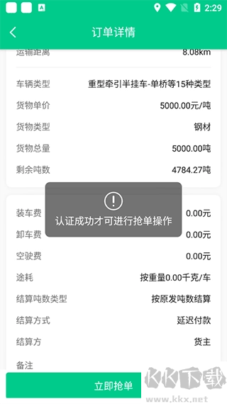 5、需留意,唯有认证成功之后,方可开展抢单操作。