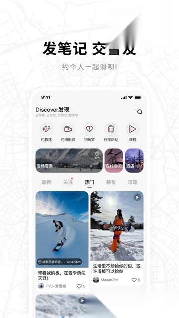 3、【分享笔记,结识雪友】分享滑雪的心得体会,结识一群志同道合的伙伴,方便随时相约一同滑雪。