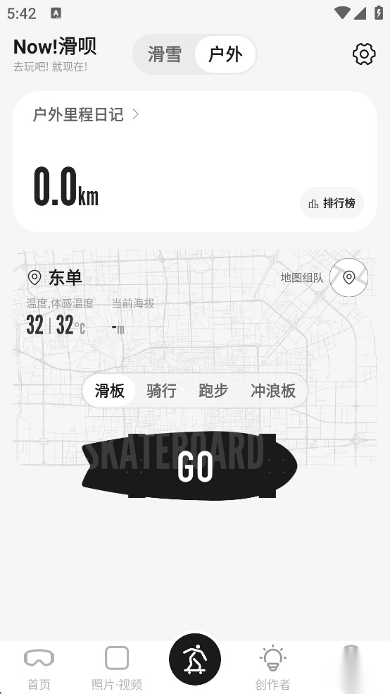 3、除了滑雪,软件还支持记录户外滑板、骑行、跑步、冲浪等活动轨迹