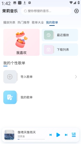 2、通过算法精准分析听歌历史,为你推送相似风格的歌曲和个性化歌单,同时支持导入其他平台的歌单,无需重新整理。