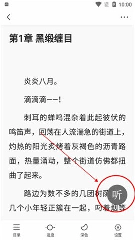 4、轻点页面右下角的“听”字标识,即可收听小说。
