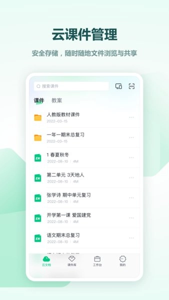 2、用户能够享有免费云空间,可用于上传、存储课件以及获取课件。