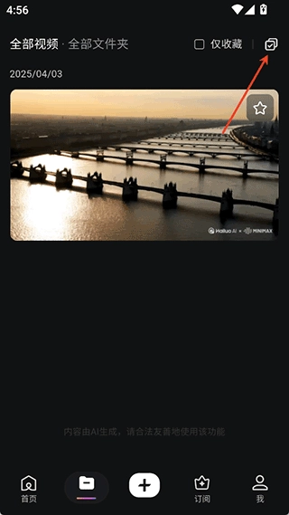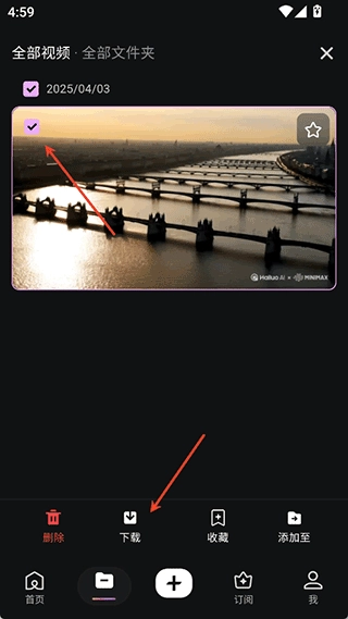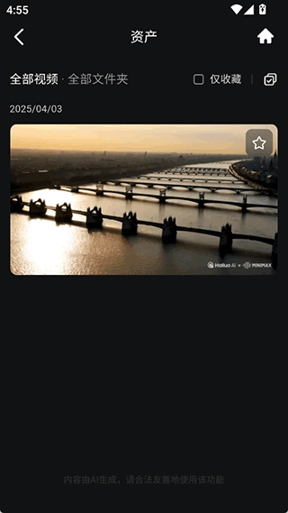 1. 用户能够在资产界面中,找到已生成好的所需视频资源,接着点击右上角的勾选按钮。