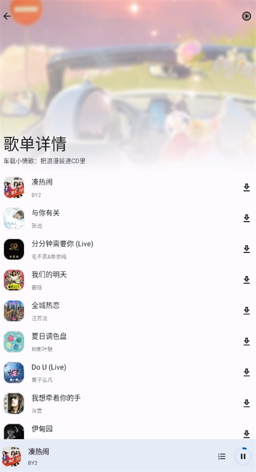 1. 开启正在播放的音乐,点击右侧的按钮。