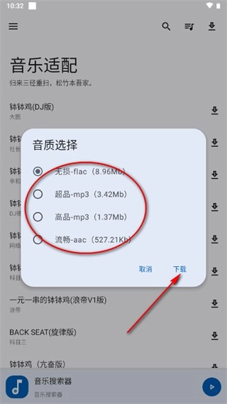 2. 支持无损、标准、高质量及MV等多种格式,加载速度快。