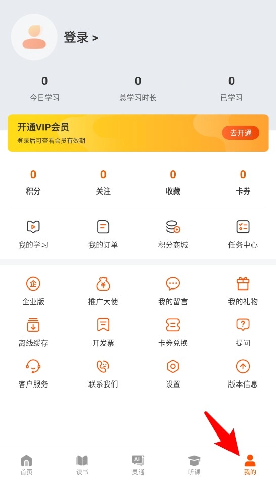 5、在个人中心,你能够查看学习记录、订单以及积分等各类信息,同时还可以对账号设置内容进行管理。