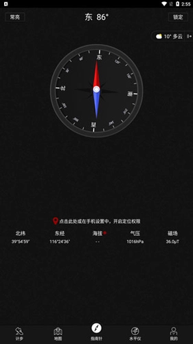 2、来到了首页最主要的功能,指南针功能,专业指南针有很多参数。