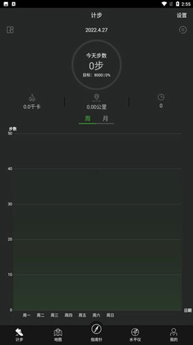 能够记录每日、每周以及每月的步数,还可以设定目标完成程度。